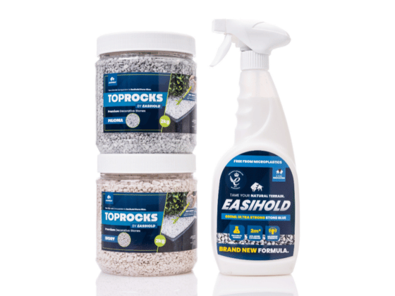 Easihold is the perfect water-based, non-toxic Stone & Mulch Binder designed to reduce mess and maintenance in your garden. It’s developed, tested, and manufactured at our purpose-built production centre to ensure quality and reliable strength in every bottle!