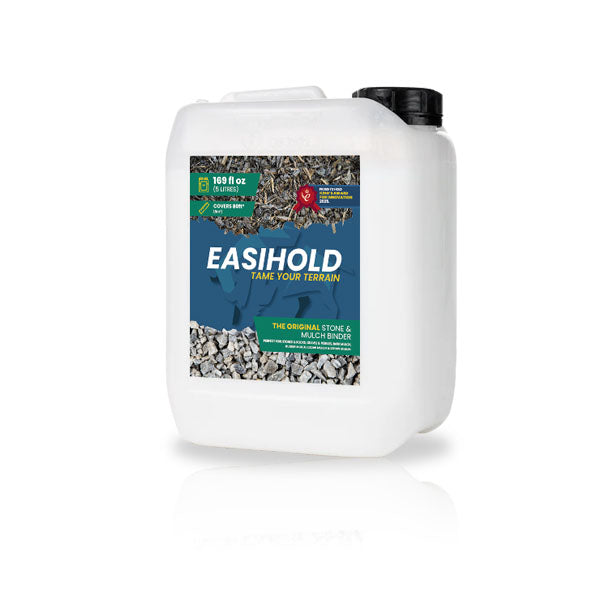 “First, I removed all the old grass and cleared the new border areas. I edged the borders with block paving stones to separate the lawn and borders clearly. After planting, I laid a weed membrane and secured it with metal prongs before adding the stones. I gave them a thorough hose down to remove any dust and waited for them to dry completely before applying Easihold.”