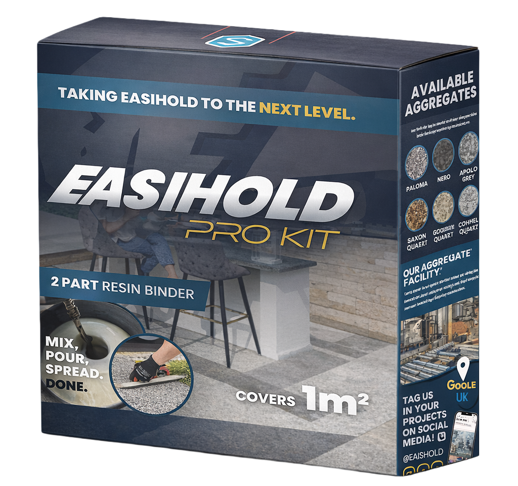 We recommend using our specially cleaned, dired & processed decorative aggreate with all Easihold products. For larger areas, our 25KG Decorative Aggregate bags are the perfect solution alongside the Easihold 5L.