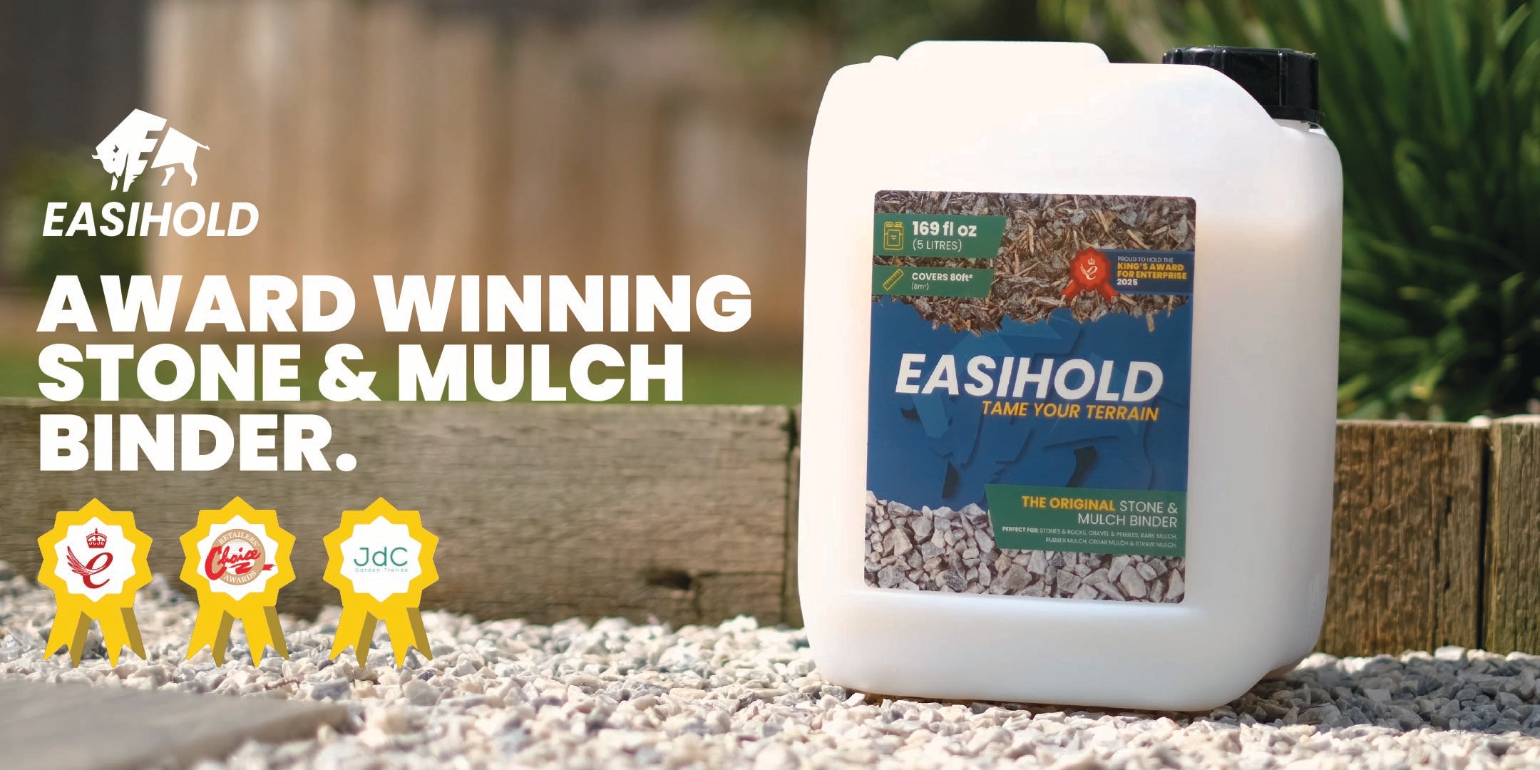 Easihold is an easy-to-use stone & mulch binder specifically designed to keep pesky stones & mulch in place with long-lasting results.